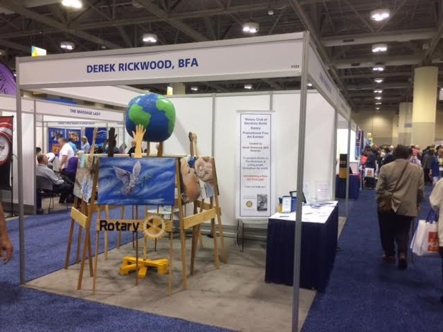 I created the exhibit to fit within small 10’ X 10’ X 8’ booth area and designed the booth to explain its purpose: ‘To promote Rotary to Non-Rotarians and to young people from around the world'. It's purpose as its name indicates is to promote awareness of Rotary and to improve public support for Rotary clubs and their success with humanitarian endeavours locally and throughout the world. It's designed to be mobile and to teach about Rotary to Non-Rotarians and young people throughout the world. The cost is to be supported by securing corporate and private sponsorship - a task I will personally manage. I have been waiting 28 years since acquiring my Bachelor of Fine Arts degree from the University of Victoria, to introduce my original fine art. Although I have been creating custom paintings since 1986 and working on another fine art exhibit for the past ten years, I decided to participate with the RI convention taking place in Toronto this year I found a worthwhile cause I had experience with and believed was important enough to use for my first fine art exhibition! I started this exhibition’s process just after RI’s last convention in Atlanta, Georgia, USA. From conceiving the idea to create a Rotary promotional fine art exhibit and the countless hours devoted to creating and set up the exhibit in a booth at the House of friendship and personally financing it I had ran into a problem trying to apply for RI licencing. I was only weeks away from showing my fine art exhibit when I received an email from the communications department which controls the licensing of Rotary images and logos, that they did not understand my exhibit and were not sure how to proceed with it. Even though my exhibit was approved, and I was awarded a booth at the House of Friendship I decided to approach my local Rotary club to support my personal Rotarian project. I was pleased that my club executive was willing to endorse my fine art exhibit. With the support of my club, I changed the name of the exhibit to be the ‘Rotary Club of Nanaimo North Rotary Promotional Fine Art Exhibit’. Showcasing my club’s name with my fine art was wonderful! I attended the convention to showcase my Rotary fine art and kept an open mind because I have never done anything like this before. I was open to any possibilities I would experience. I had many experiences with wonderful Rotarians and people associated with setting up my booth at the House of Friendship exhibition, such as: Roberta Smith, Freemans exhibit manager and I had a chance to meet a devoted and kind Rotarian named Madiha Khan, President of the Rotary Club of Mississauga-Dixie. She was in charge of Rotaractors in the Toronto area who assisted me at my booth. Even though I was unable leave my booth and I didn’t have a partner at the exhibition, I was I able to meet countless Rotarians and humanitarians from around the world. The convention was an opportunity to share ideas and passions about helping humanity. I am excited to report I learned and discovered and shared ideas with my art with others in ways I could never have expected. The exhibit included paintings that depicted the six areas of focus we support through our RI Foundation. They were selected to move the emotions of the viewer and they did! ‘Promoting Peace’, Oil on canvas, 20” x 32” ‘Fighting Disease’, Oil on canvas, 20” x 32” ‘Providing Clean Water, Sanitation & Hygiene’, Oil on canvas, 20” x 32” ‘Helping Mothers & Children’, Oil on canvas, 20” x 32” ‘Supporting Education’, Oil on canvas, 20” x 32” ‘Growing Local Economies’, Oil on canvas, 20” x 32” My exhibit was able to represent every cause presented in the House of Friendship. On the fourth day of the convention, I was excited as I met David Elizalde, a new president of the Rotary Club of Amarillo, Texas who wanted my exhibit to help promote Rotary in his district and raise funds for the RI foundation through the sale of prints of the paintings that are part of the exhibit during this time. He will be flying me down to Texas in the fall to be a part of civic event. He plans to unveil my Rotary promotional fine art exhibit. I have been following up with other Rotarians that I met during my time exhibiting over five days and there have been numerous connections with them and other humanitarian groups from the around the world.